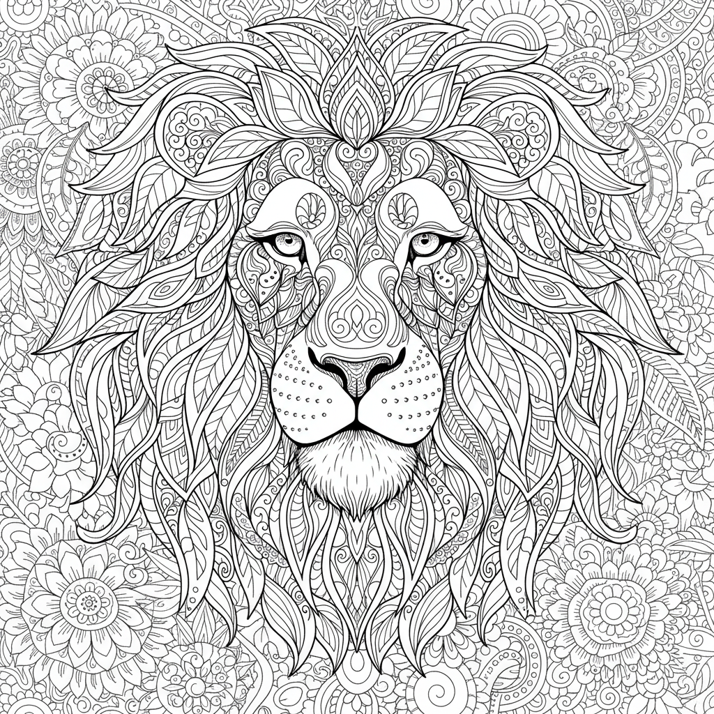 Free printable Lion coloring page for Adults. High-quality, easy to print, and perfect for creativity. Generate your own custom Lion coloring sheets instantly!