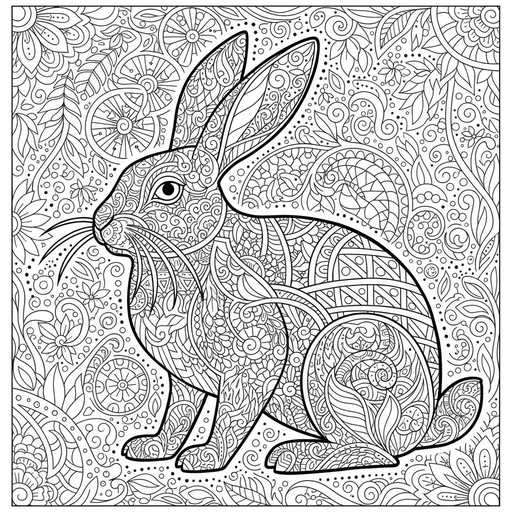 Free printable Rabbit coloring page for Adults. High-quality, easy to print, and perfect for creativity. Generate your own custom Rabbit coloring sheets instantly!
